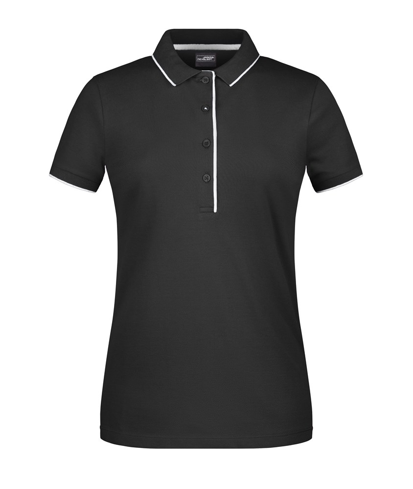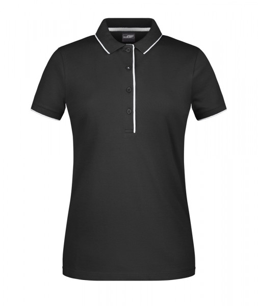 Hochwertige Piqué-Qualität Gekämmte, ringgesponnene Baumwolle Gestrickter Polokragen und Armbündchen mit Kontraststreifen Knopfleiste innen in Kontrastfarbe Knöpfe Ton in Ton Seitenschlitze JN727: taillierter Schnitt, 4 Knöpfe JN728: 3 Knöpfe.