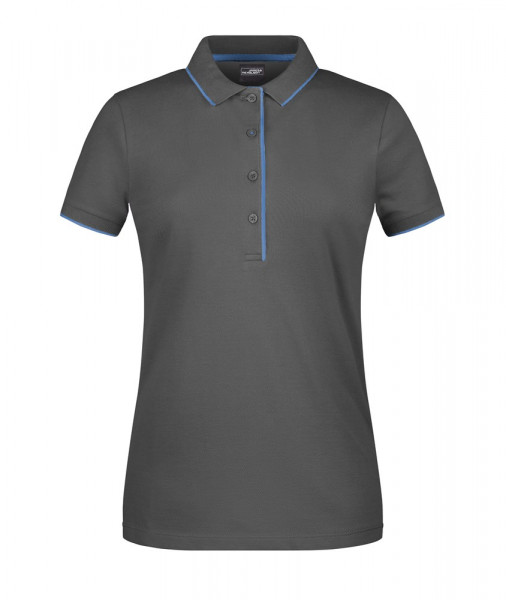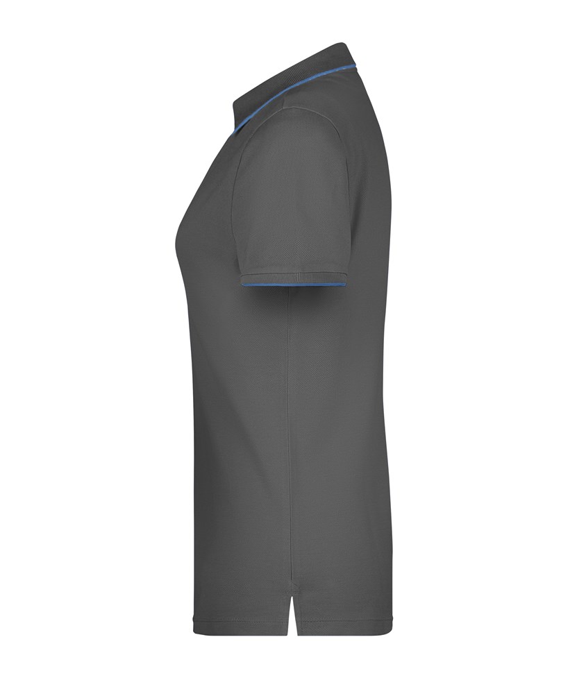 Hochwertige Piqué-Qualität Gekämmte, ringgesponnene Baumwolle Gestrickter Polokragen und Armbündchen mit Kontraststreifen Knopfleiste innen in Kontrastfarbe Knöpfe Ton in Ton Seitenschlitze JN727: taillierter Schnitt, 4 Knöpfe JN728: 3 Knöpfe.