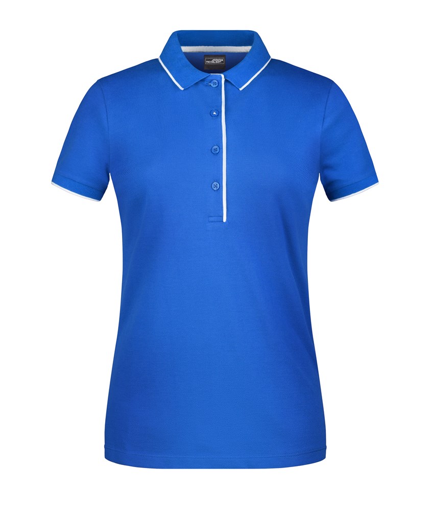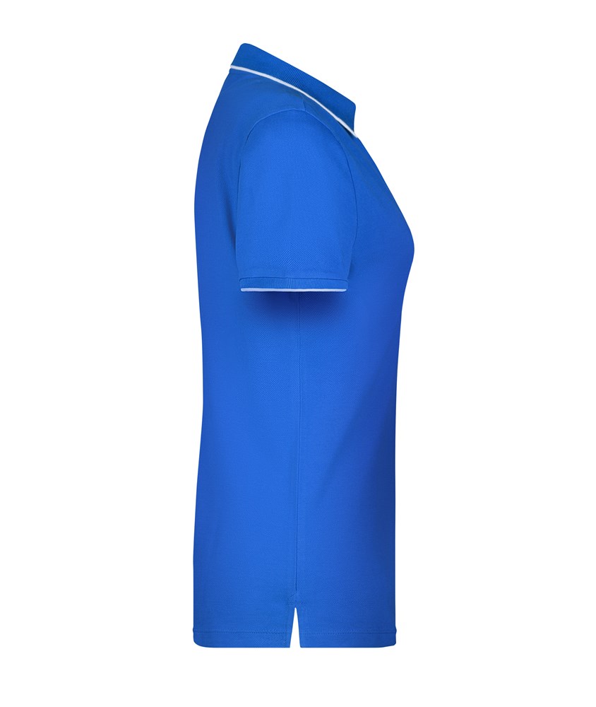 Hochwertige Piqué-Qualität Gekämmte, ringgesponnene Baumwolle Gestrickter Polokragen und Armbündchen mit Kontraststreifen Knopfleiste innen in Kontrastfarbe Knöpfe Ton in Ton Seitenschlitze JN727: taillierter Schnitt, 4 Knöpfe JN728: 3 Knöpfe.