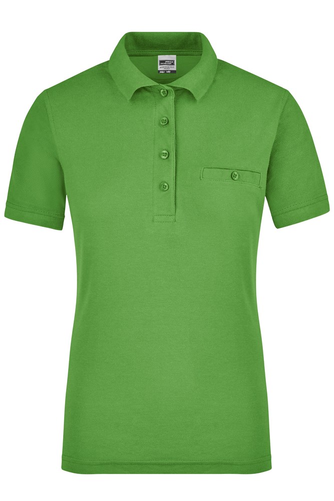 Materialmix aus Baumwolle und Polyester für optimale Form- und Waschbeständigkeit Gestrickter Polokragen und Armbündchen Brusttasche mit Patte und Knopf, loser Taschenbeutel zur einfachen Veredelung Necktape Loser Nackenspiegel für einfache Kennzeichnung JN846: Knopfleiste mit 3 Knöpfen JN867: Knopfleiste mit 4 Knöpfen, leicht tailliert 60°C waschbar, trocknergeeignet.
