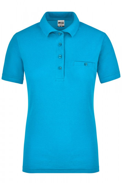 Materialmix aus Baumwolle und Polyester für optimale Form- und Waschbeständigkeit Gestrickter Polokragen und Armbündchen Brusttasche mit Patte und Knopf, loser Taschenbeutel zur einfachen Veredelung Necktape Loser Nackenspiegel für einfache Kennzeichnung JN846: Knopfleiste mit 3 Knöpfen JN867: Knopfleiste mit 4 Knöpfen, leicht tailliert 60°C waschbar, trocknergeeignet.