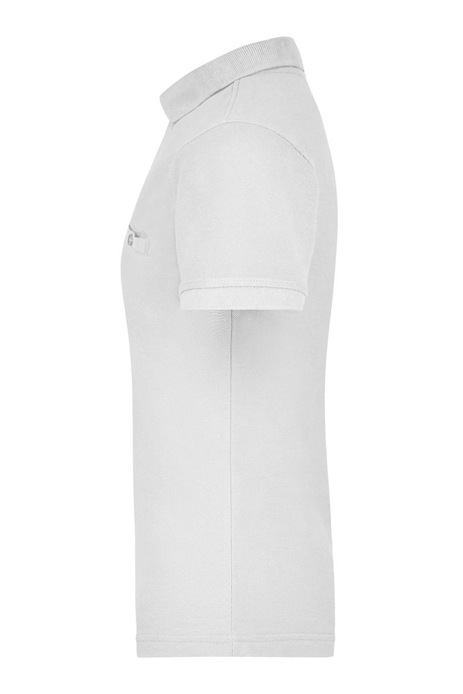 Materialmix aus Baumwolle und Polyester für optimale Form- und Waschbeständigkeit Gestrickter Polokragen und Armbündchen Brusttasche mit Patte und Knopf, loser Taschenbeutel zur einfachen Veredelung Necktape Loser Nackenspiegel für einfache Kennzeichnung JN846: Knopfleiste mit 3 Knöpfen JN867: Knopfleiste mit 4 Knöpfen, leicht tailliert 60°C waschbar, trocknergeeignet.