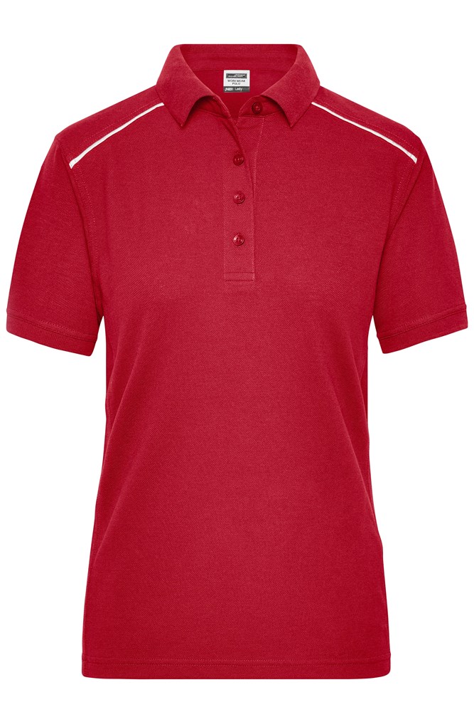 Materialmix aus gekämmter, ringgesponnener BIO-Baumwolle und Polyester für optimale Form- und Waschbeständigkeit Gestrickter Polokragen und Armbündchen Paspel an Vorder- und Rückenteil 60° waschbar, trocknergeeignet JN891: Knopfleiste mit 4 Knöpfen, leicht tailliert JN892: Knopfleiste mit 3 Knöpfen.