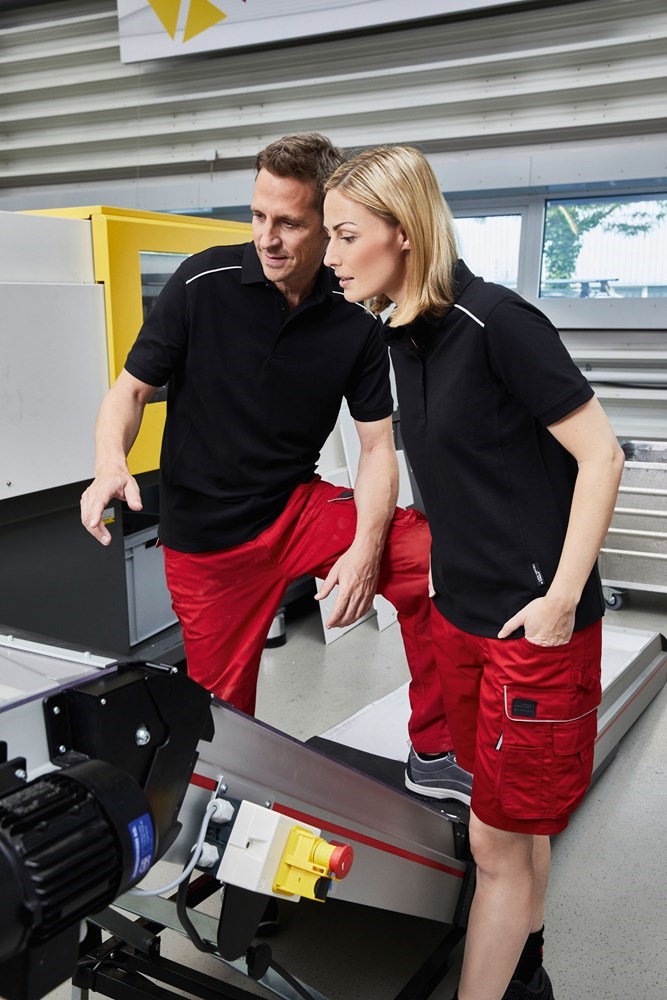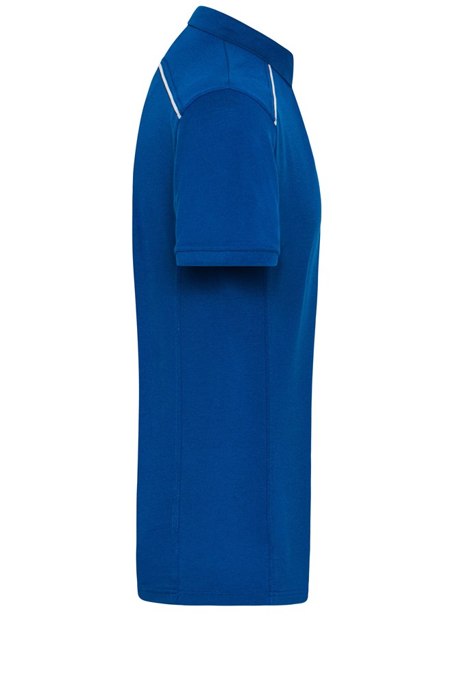 Materialmix aus gekämmter, ringgesponnener BIO-Baumwolle und Polyester für optimale Form- und Waschbeständigkeit Gestrickter Polokragen und Armbündchen Paspel an Vorder- und Rückenteil 60° waschbar, trocknergeeignet JN891: Knopfleiste mit 4 Knöpfen, leicht tailliert JN892: Knopfleiste mit 3 Knöpfen. Maße: 1/2 Oberweite: 48 cm Länge ab Schulter: 70 cm Ärmel Länge: 22 cm. Waschen: Maximale Waschtemperatur 60°C, Normalwaschgang. Bleichen: Nicht Bleichen. Bugeln: Bügeln mit einer Höchsttemperatur der Bügeleisensohle von 150°C. Reinigen: Nicht trockenreinigen. Trocknung: Trocknen im Tumbler möglich, niedrige Temperatur, 60°C normaler Trocknungsprozess.