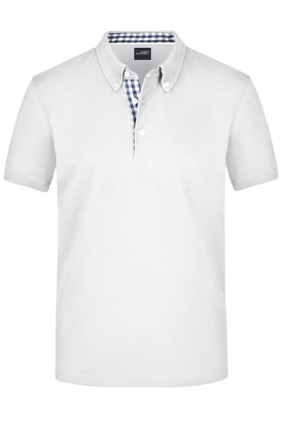 Feine, klassische Piqué-Qualität Gekämmte, ringgesponnene Baumwolle Konfektionierter Button-Down-Kragen Besatz in Kragensteg, Knopfleiste innen und Seitenschlitzen 3 Knöpfe in Kontrastfarbe, Halbmond Ton in Ton.