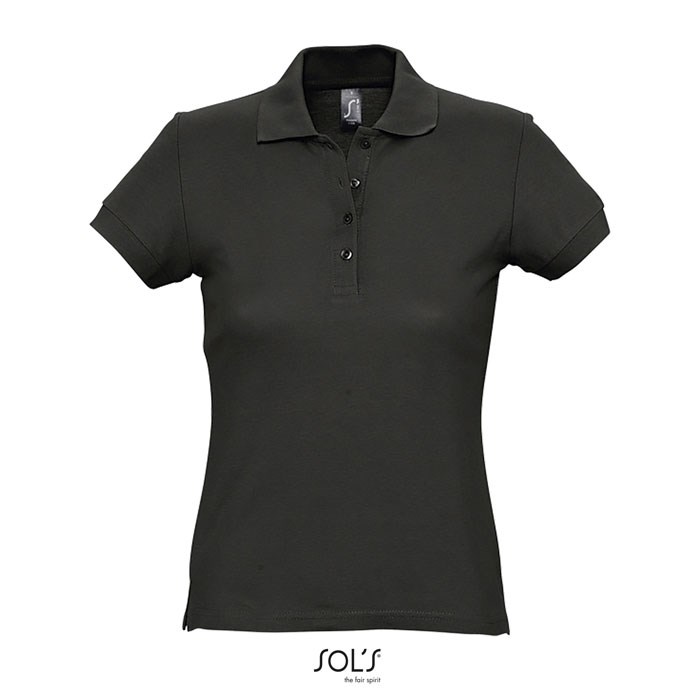 SOL'S PASSION Damen Polo-Piqué. Große Farbauswahl. Stylischer Damenschnitt. Rippkragen und -bündchen, Nackenband, Kurzarm, Seitennähte, Knopfleiste mit 4 farblich abgestimmten Knöpfen. Taillierter Schnitt, gerade am Saum mit Seitenschlitzen. Ersatzknopf innen. Material: 170g/m² in 100% gekämmter, ringgesponnener Baumwolle.