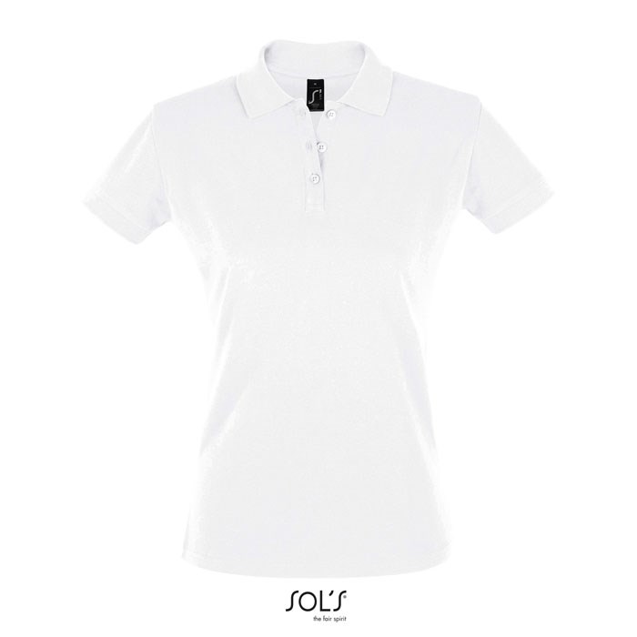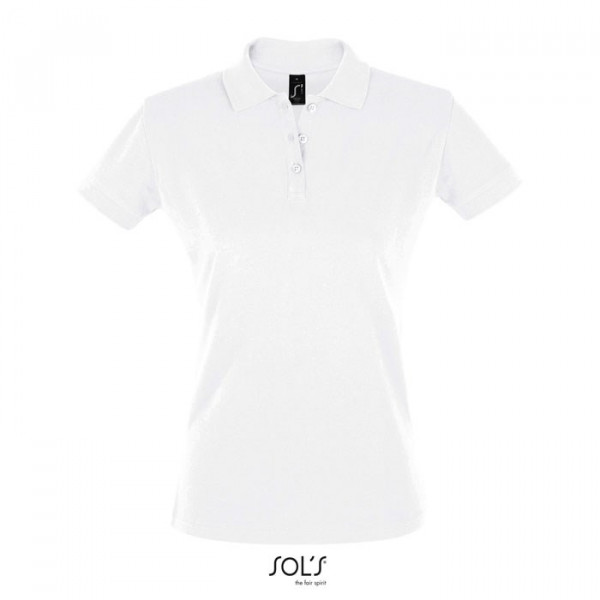 SOL'S PERFECT Damen Polo-Piqué mit Rippkragen und -bündchen, Nackenband, Kurzarm, Knopfleiste mit 2 farblich abgestimmten Perlmuttknöpfen, Seitennähte, Ersatzknopf am Seitenlabel innen. Material: 180g/m², 100% gekämmte, ringgesponnene Baumwolle.