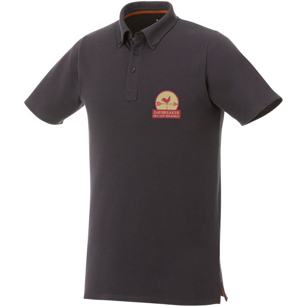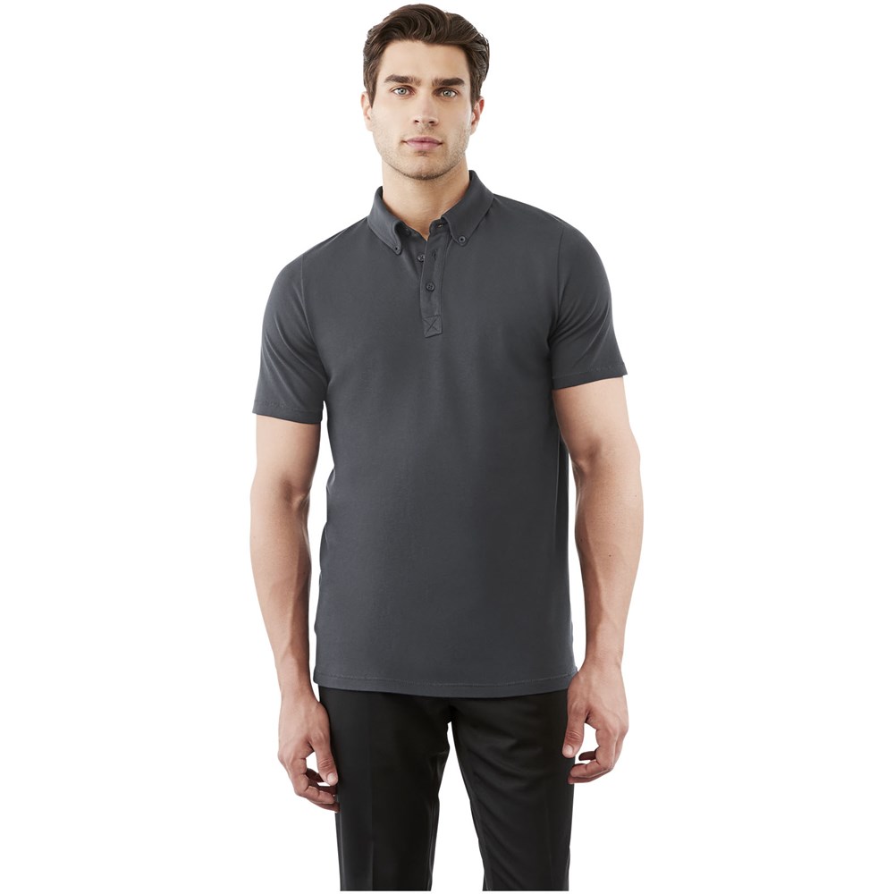 Stoff Einfassung am Kragen. Stetch-Material. 3er-Knopfleiste. Button-Down Kragen. Seitenschlitze. Nackenband in Kontrastfarbe. Halbmond. Gravierte Ton-in-Ton Knöpfe. Transfer Hauptlabel für den etikettfreien Komfort.