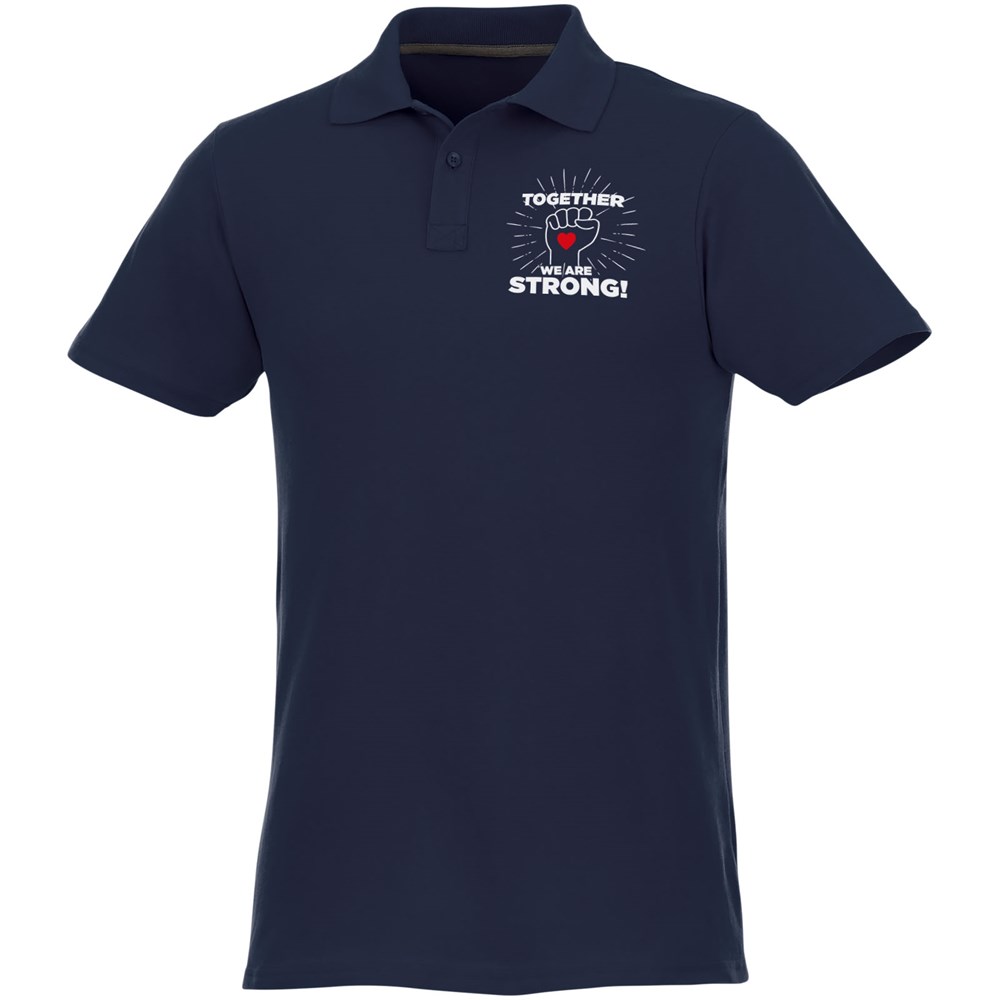 Individuelles Produkt-Branding für den Innenbereich. Ablösbares Label für Tragekomfort. Flachstrickkragen. 2-er Knopfleiste mit gravierten Knöpfen. Doppelnaht an Kragen und Saum. Knopf Ton-in-Ton. Nackenband in Kontrastfarbe.