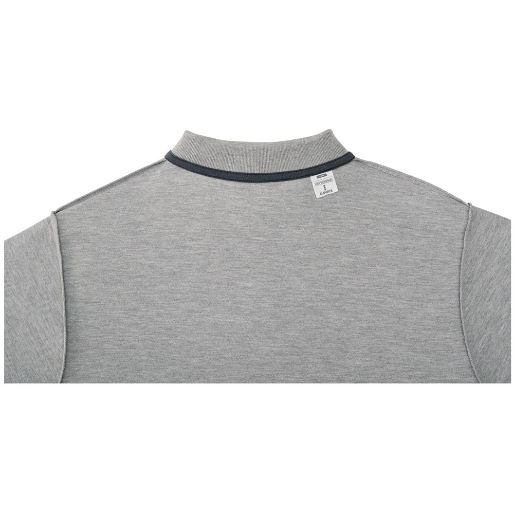 Individuelles Produkt-Branding für den Innenbereich. Ablösbares Label für Tragekomfort. Flachstrickkragen. 2-er Knopfleiste mit gravierten Knöpfen. Doppelnaht an Kragen und Saum. Knopf Ton-in-Ton. Nackenband in Kontrastfarbe.