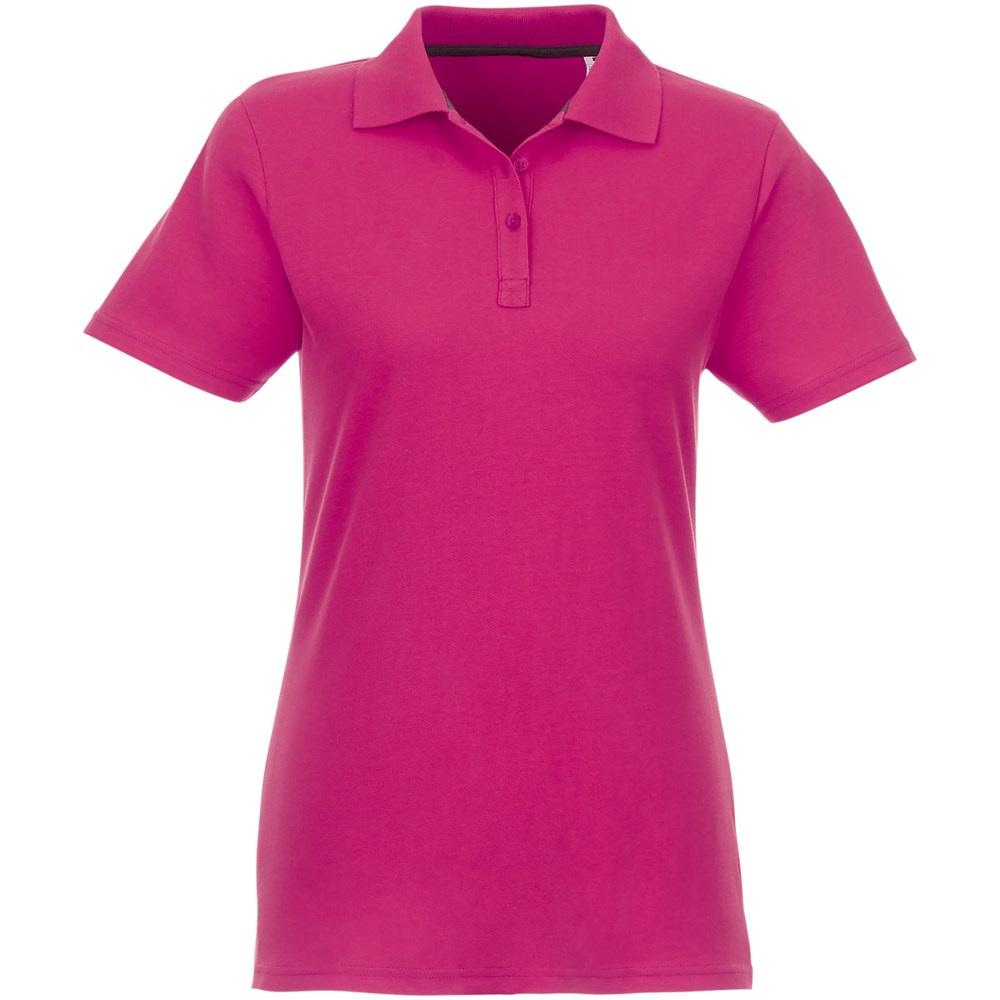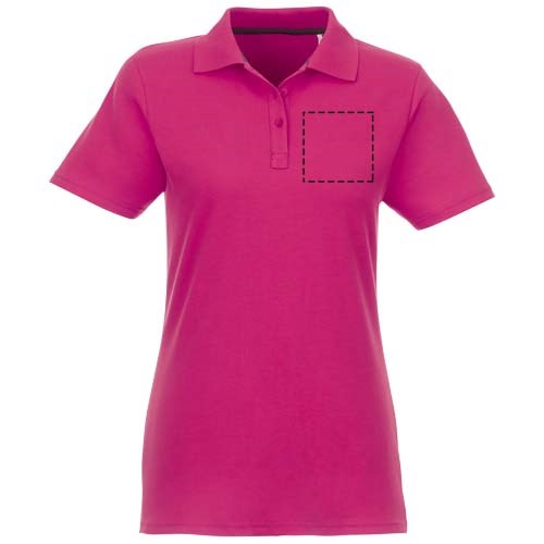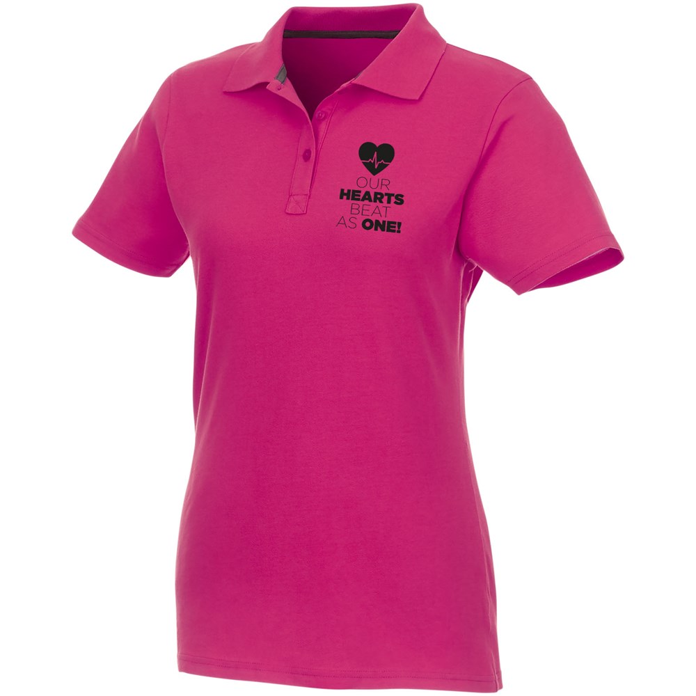 Individuelles Produkt-Branding für den Innenbereich. Ablösbares Label für Tragekomfort. Flachstrickkragen. 3er-Knopfleiste. Doppelnaht an Kragen und Saum. Knopf Ton-in-Ton. Nackenband in Kontrastfarbe.