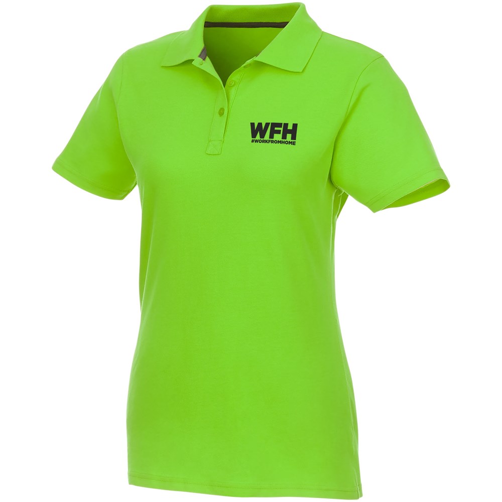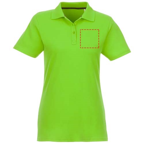 Individuelles Produkt-Branding für den Innenbereich. Ablösbares Label für Tragekomfort. Flachstrickkragen. 3er-Knopfleiste. Doppelnaht an Kragen und Saum. Knopf Ton-in-Ton. Nackenband in Kontrastfarbe.