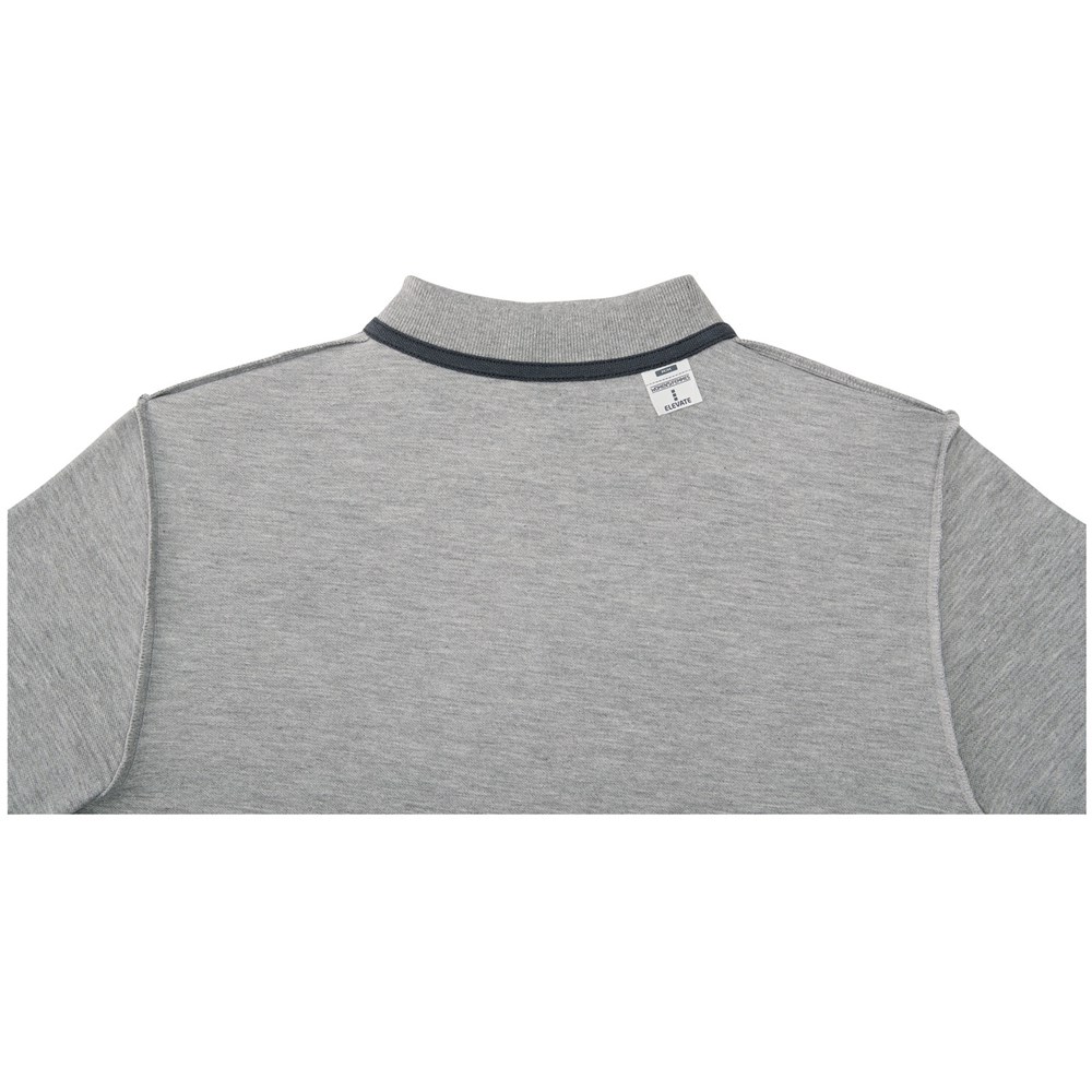 Individuelles Produkt-Branding für den Innenbereich. Ablösbares Label für Tragekomfort. Flachstrickkragen. 3er-Knopfleiste. Doppelnaht an Kragen und Saum. Knopf Ton-in-Ton. Nackenband in Kontrastfarbe.