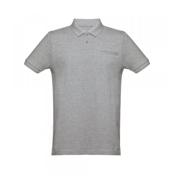 Herren Poloshirt aus Piqué Stoff 100% kardierter Baumwolle (195g/m²). Mit geripptem Kragen und Ärmelbündchen, einem Verstärkungsband am Kragen, verstärkte Knopfleiste mit 2 farblich abgestimmten Knöpfen und einem Ersatzknopf an der Innennaht. Unten mit seitlichen Öffnungen. Paspeltasche auf der Brust. Bei der Farbe 183 bestehend aus 85% Baumwolle und 15% Viskose. Größen: S, M, L, XL, XXL