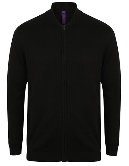 Unisex Feinstrick-Bomberjacke, 12 Gauge | Abgepasster Ärmel | Mit durchgehendem Reißverschluss vorne | Metall-Reißverschluss und -Schieber | 1x1-Ripp-Strick an Kragen, Bündchen und Saum | Eingefasste Brusttaschen | Herausnehmbares Henbury Nacken-Label
