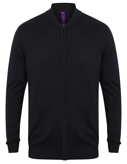 Unisex Feinstrick-Bomberjacke, 12 Gauge | Abgepasster Ärmel | Mit durchgehendem Reißverschluss vorne | Metall-Reißverschluss und -Schieber | 1x1-Ripp-Strick an Kragen, Bündchen und Saum | Eingefasste Brusttaschen | Herausnehmbares Henbury Nacken-Label