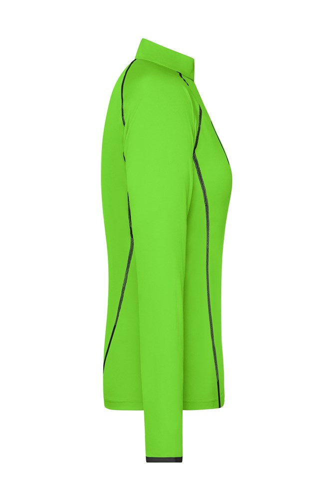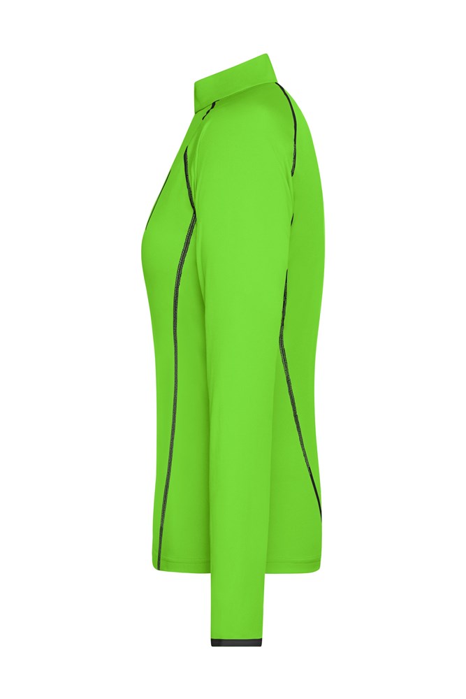 Atmungsaktiv und feuchtigkeitsregulierend Schnell trocknend, leicht und komfortabel Raglanärmel, Stehkragen Kontrastfarbige Flatlocknähte im Vorder- und Rückenteil Kragen innen und Armabschluss in Kontrastfarbe Reißverschluss mit Kinnschutz JN497: leicht tailliert.