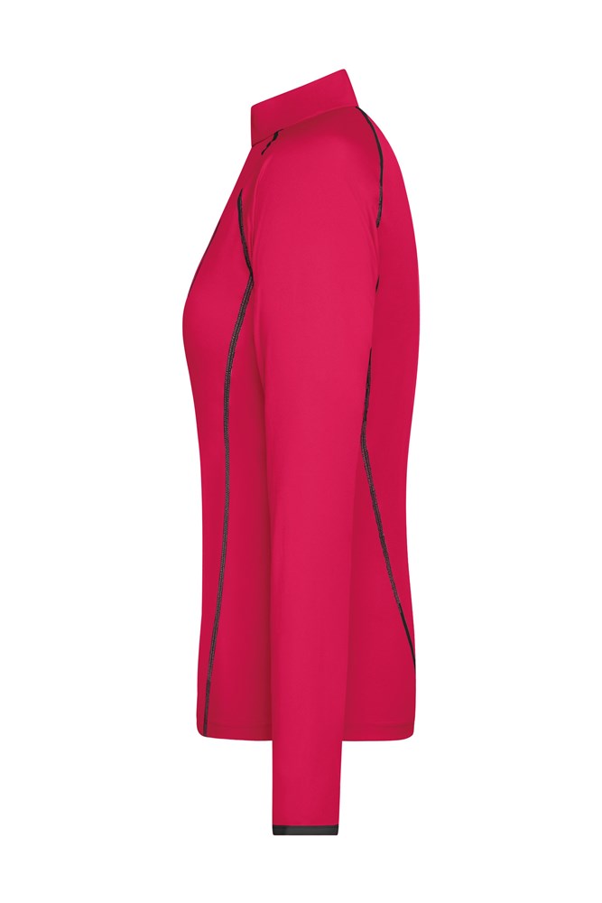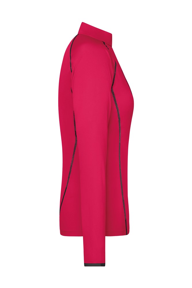 Atmungsaktiv und feuchtigkeitsregulierend Schnell trocknend, leicht und komfortabel Raglanärmel, Stehkragen Kontrastfarbige Flatlocknähte im Vorder- und Rückenteil Kragen innen und Armabschluss in Kontrastfarbe Reißverschluss mit Kinnschutz JN497: leicht tailliert.