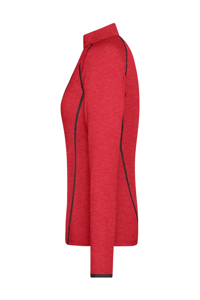 Atmungsaktiv und feuchtigkeitsregulierend Schnell trocknend, leicht und komfortabel Raglanärmel, Stehkragen Kontrastfarbige Flatlocknähte im Vorder- und Rückenteil Kragen innen und Armabschluss in Kontrastfarbe Reißverschluss mit Kinnschutz JN497: leicht tailliert.