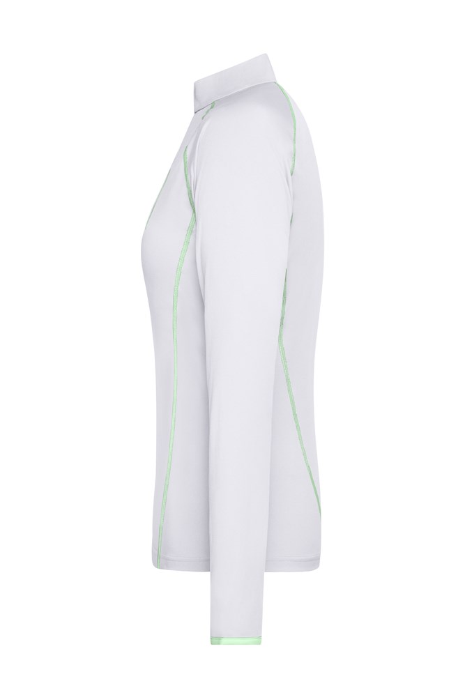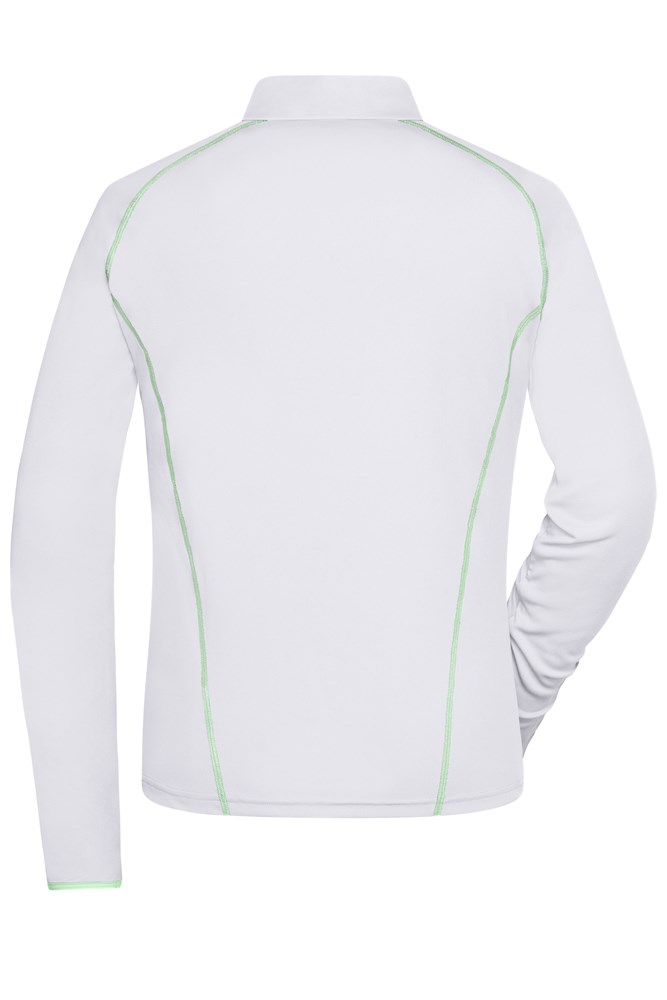 Atmungsaktiv und feuchtigkeitsregulierend Schnell trocknend, leicht und komfortabel Raglanärmel, Stehkragen Kontrastfarbige Flatlocknähte im Vorder- und Rückenteil Kragen innen und Armabschluss in Kontrastfarbe Reißverschluss mit Kinnschutz JN497: leicht tailliert.