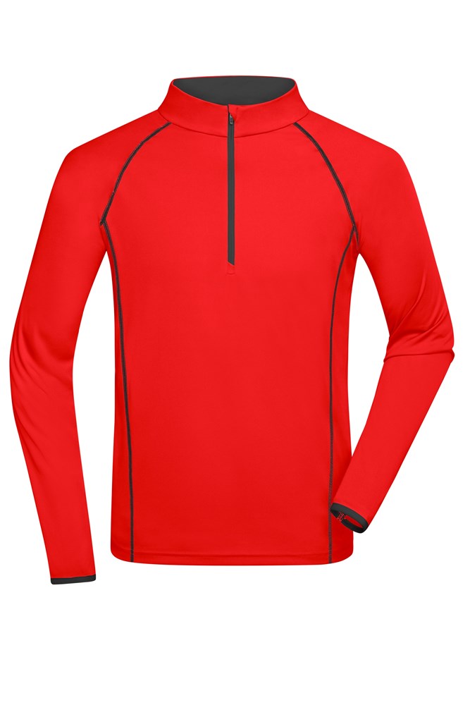 Atmungsaktiv und feuchtigkeitsregulierend Schnell trocknend, leicht und komfortabel Raglanärmel, Stehkragen Kontrastfarbige Flatlocknähte im Vorder- und Rückenteil Kragen innen und Armabschluss in Kontrastfarbe Reißverschluss mit Kinnschutz JN497: leicht tailliert.