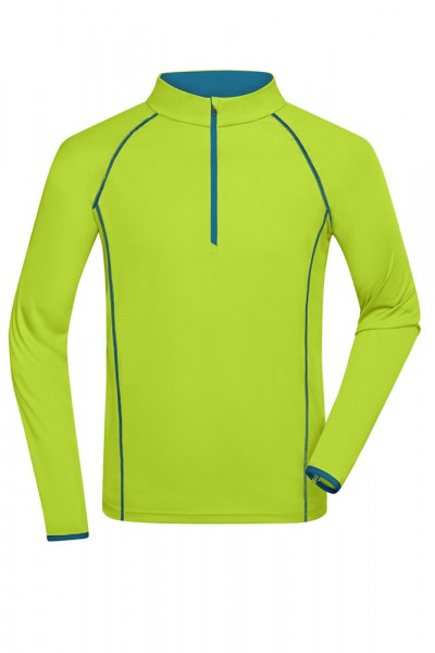 Atmungsaktiv und feuchtigkeitsregulierend Schnell trocknend, leicht und komfortabel Raglanärmel, Stehkragen Kontrastfarbige Flatlocknähte im Vorder- und Rückenteil Kragen innen und Armabschluss in Kontrastfarbe Reißverschluss mit Kinnschutz JN497: leicht tailliert.