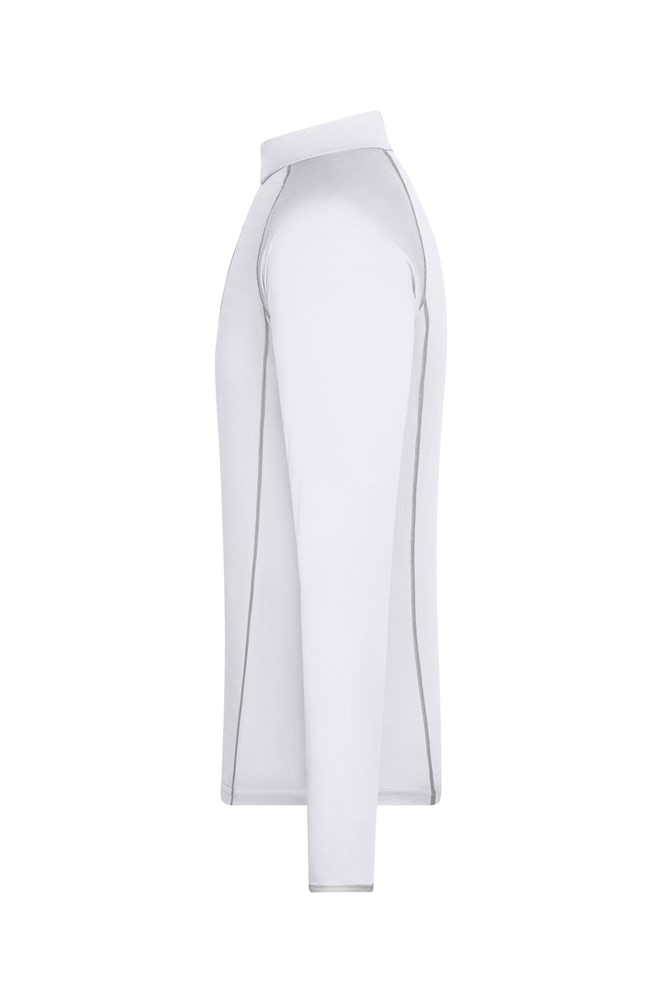 Atmungsaktiv und feuchtigkeitsregulierend Schnell trocknend, leicht und komfortabel Raglanärmel, Stehkragen Kontrastfarbige Flatlocknähte im Vorder- und Rückenteil Kragen innen und Armabschluss in Kontrastfarbe Reißverschluss mit Kinnschutz JN497: leicht tailliert.