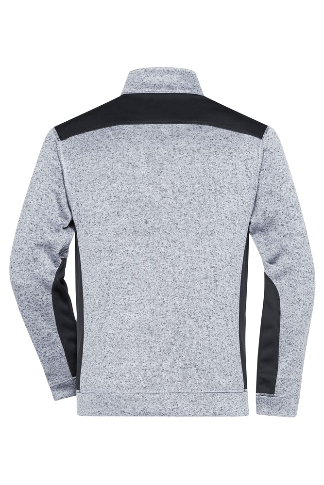 Weiches, wärmendes, pflegeleichtes Material in Melangeoptik Außenseite Strickoptik, Innenseite flauschig weich angeraut Elastische Softshelleinsätze an Seite, Schulter und Ärmel Stehkragen mit unterlegter Reißverschluss mit Kinnschutz.