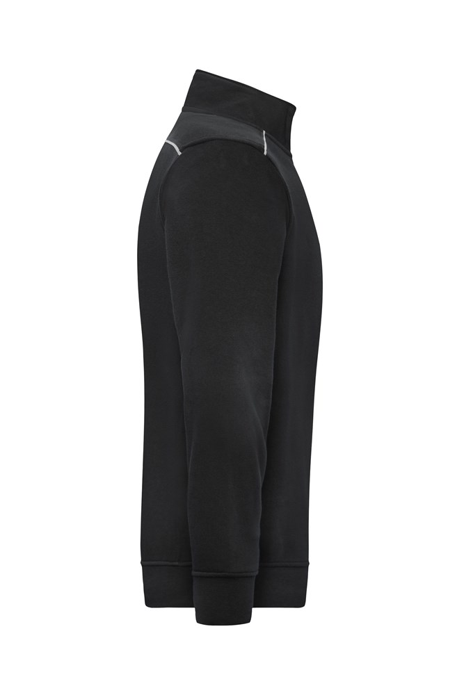 Strapazierfähige, pflegeleichte Baumwoll/Polyester-Mischung Gekämmte, ringgesponnene Baumwolle, Innenseite angeraut Paspel an Vorder- und Rückenteil Rippstrickbündchen mit Elasthan an Arm- und Bundabschluss Reißverschluss: YKK 60° waschbar und trocknergeeignet.