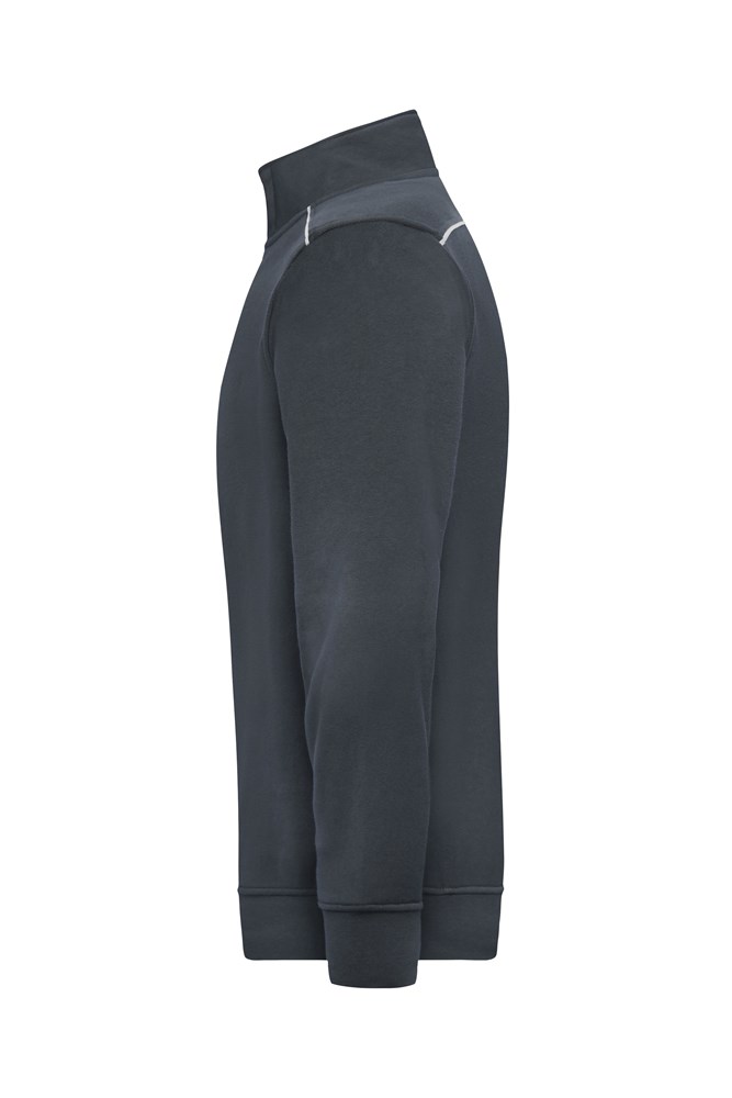 Strapazierfähige, pflegeleichte Baumwoll/Polyester-Mischung Gekämmte, ringgesponnene Baumwolle, Innenseite angeraut Paspel an Vorder- und Rückenteil Rippstrickbündchen mit Elasthan an Arm- und Bundabschluss Reißverschluss: YKK 60° waschbar und trocknergeeignet.