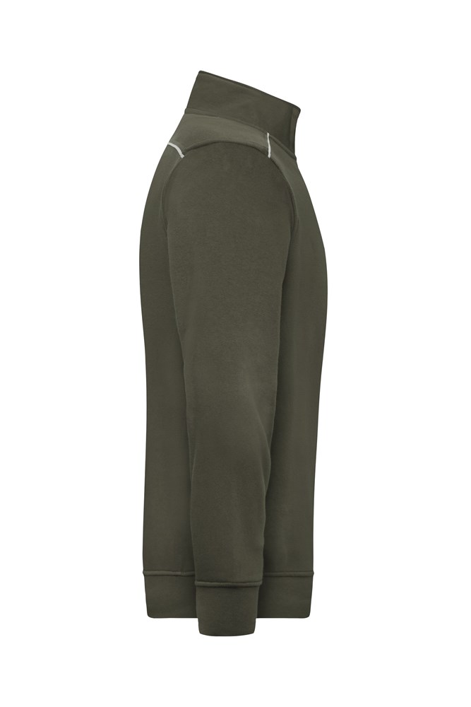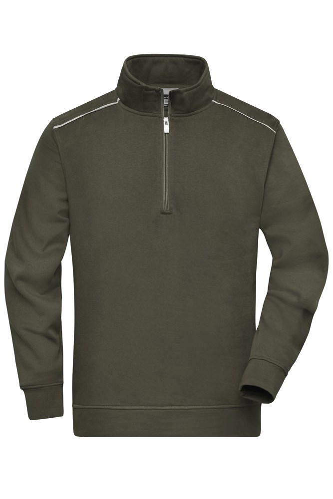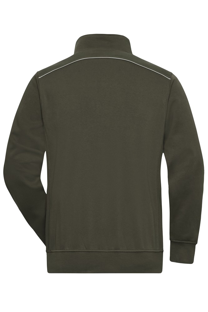 Strapazierfähige, pflegeleichte Baumwoll/Polyester-Mischung Gekämmte, ringgesponnene Baumwolle, Innenseite angeraut Paspel an Vorder- und Rückenteil Rippstrickbündchen mit Elasthan an Arm- und Bundabschluss Reißverschluss: YKK 60° waschbar und trocknergeeignet.