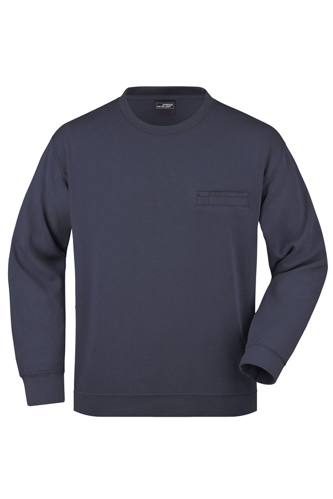 Hochwertige Sweat-Qualität mit angerauter Innenseite Gekämmte, ringgesponnene Baumwolle Robuste Doppelnähte an Schultern, Bund, Hals- und Armausschnitt Bündchen mit Elasthan Necktape und Halbmondbesatz im Nacken Brusttasche 13 x 13 cm 60°C waschbar, formbeständig 3-fädige Sweat-Qualität.