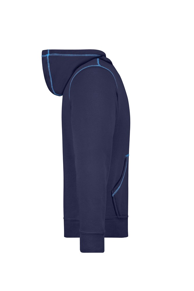 Hochwertige, weiche Sweat-Qualität, innen angeraut Gekämmte, ringgesponnene Baumwolle Bündchen mit Elasthan Flatlocknähte in Kontrastfarbe Doppellagige Kapuze innen und Kordel in Kontrastfarbe Kängurutasche JN960: Leicht tailliert, lässiger Schnitt.