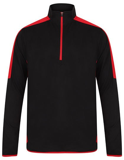 Hauptteil: 100 % Polyester Single Jersey (165 g/m²), Einsätze: 100 % Polyester Interlock (250 g/m²) | Kurzer Reißverschluss am Ausschnitt mit Stehkragen | Einsätze in Kontrastfarbe an den Seiten und Ärmeln | Umgekehrter Nylon-Reißverschluss mit verriegelbarem Schieber | Kontrastfarbene Stretch-Einfassung an Ärmelbündchen und Saum | Verdeckte Tasche in Teilungsnaht auf der rechten Seite (wie getragen) | Neues, heraustrennbares „Finden & Hales“-Etikett für einfaches Umlabeln