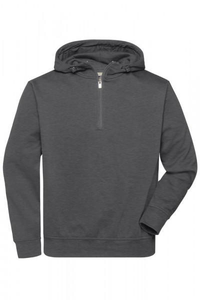 Strapazierfähige, pflegeleichte Baumwoll/Polyestermischung Gekämmte, ringgesponnene BIO-Baumwolle, Innenseite angeraut Doppellagige Kapuze mit elastischer, verstellbarer Kordel Rippstrickbündchen mit Elasthan an Arm- und Bundabschluss 60°C waschbar, trocknergeeignet Reißverschluss: YKK.