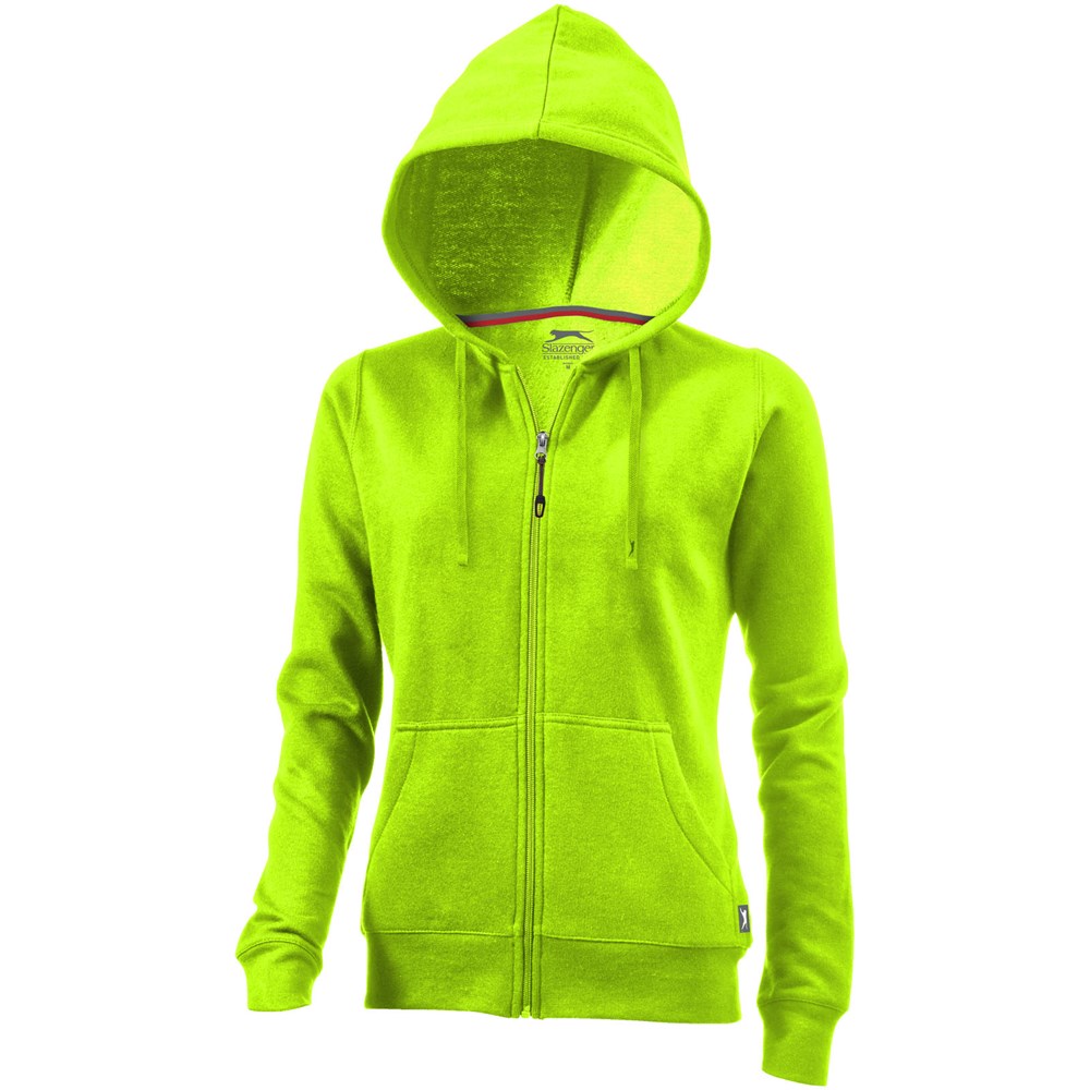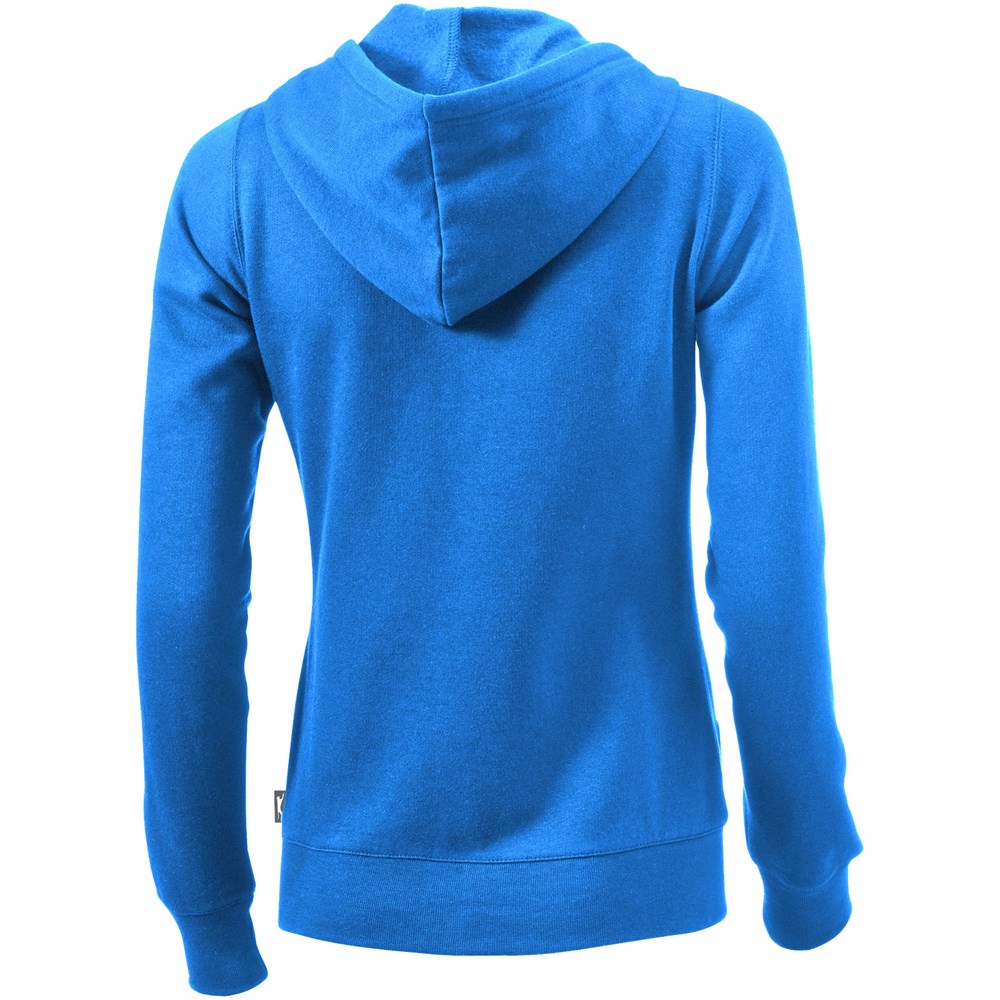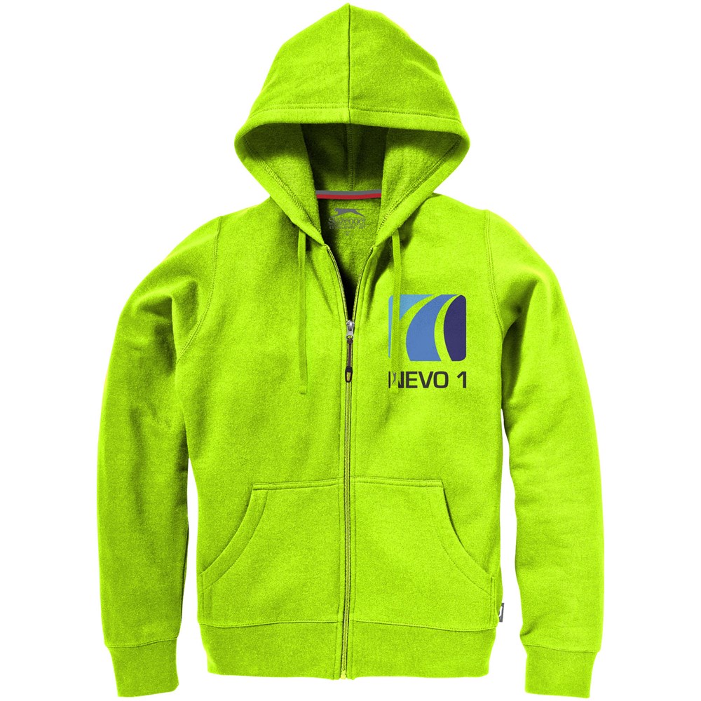 1x1 Rippstrickkragen und Bund. Elasischer 2x2 Rippstrickbund. Kängurutasche. Herren und Damen Modell mit Kordelzug in Kapuze. Tailliert für eine schmeichelhafte Passform. Easy Grip Reißverschluss Puller. Halbmond. 2-farbiges Nackenband. Antike silberne Ösen mit graviertem Logo. Label an Seitennaht.