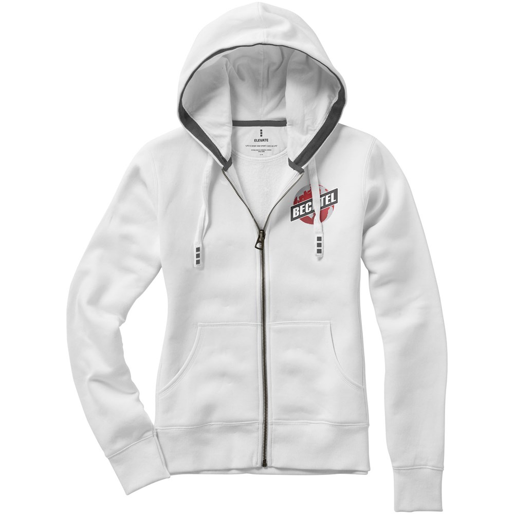 Rippstrick seitliche Einsätze. Rippstrickkragen. Elasischer Rippstrickbund. Kordelzug in Kapuze. Kängurutasche. Halbmond. Single Jersey Futter im Inneren der Kapuze. Antike silberne Ösen mit graviertem Logo. Satin Nackenband. Kontrastfarbiges Fischgrätenband in der Kapuze.