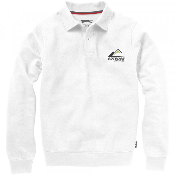 2-er Knopfleiste mit gravierten Knöpfen. Flachstrickkragen. 1x1 Rippstrickkragen und Bund. Elasischer 2x2 Rippstrickbund. Halbmond. 2-farbiges Nackenband. Gravierte Ton-in-Ton Knöpfe. Label an Seitennaht. Transfer Hauptlabel für den etikettfreien Komfort..