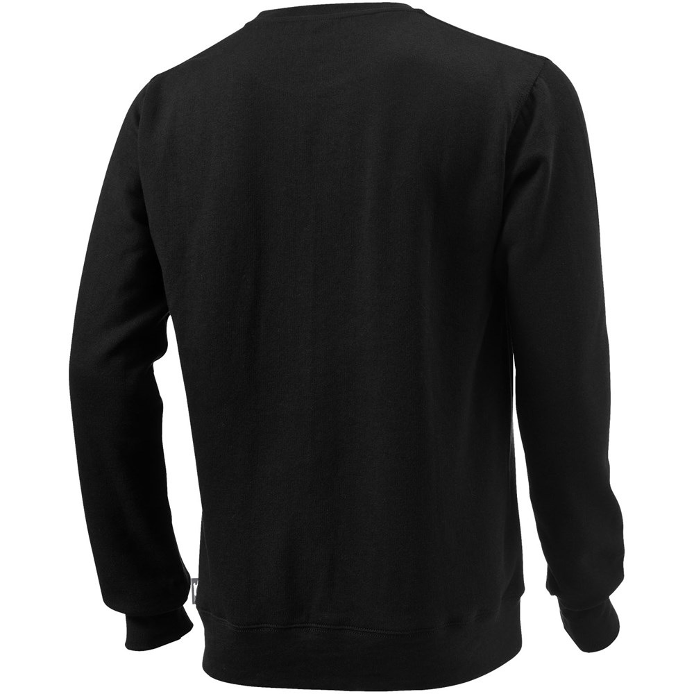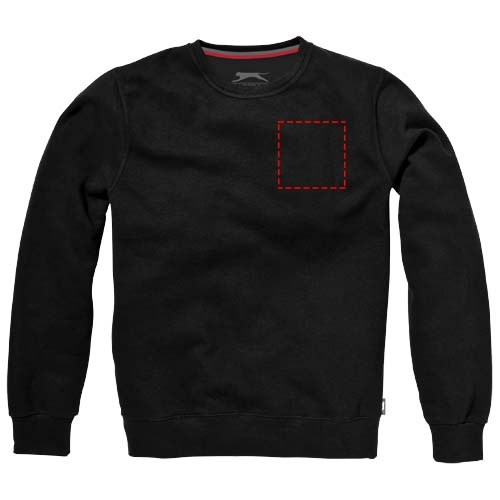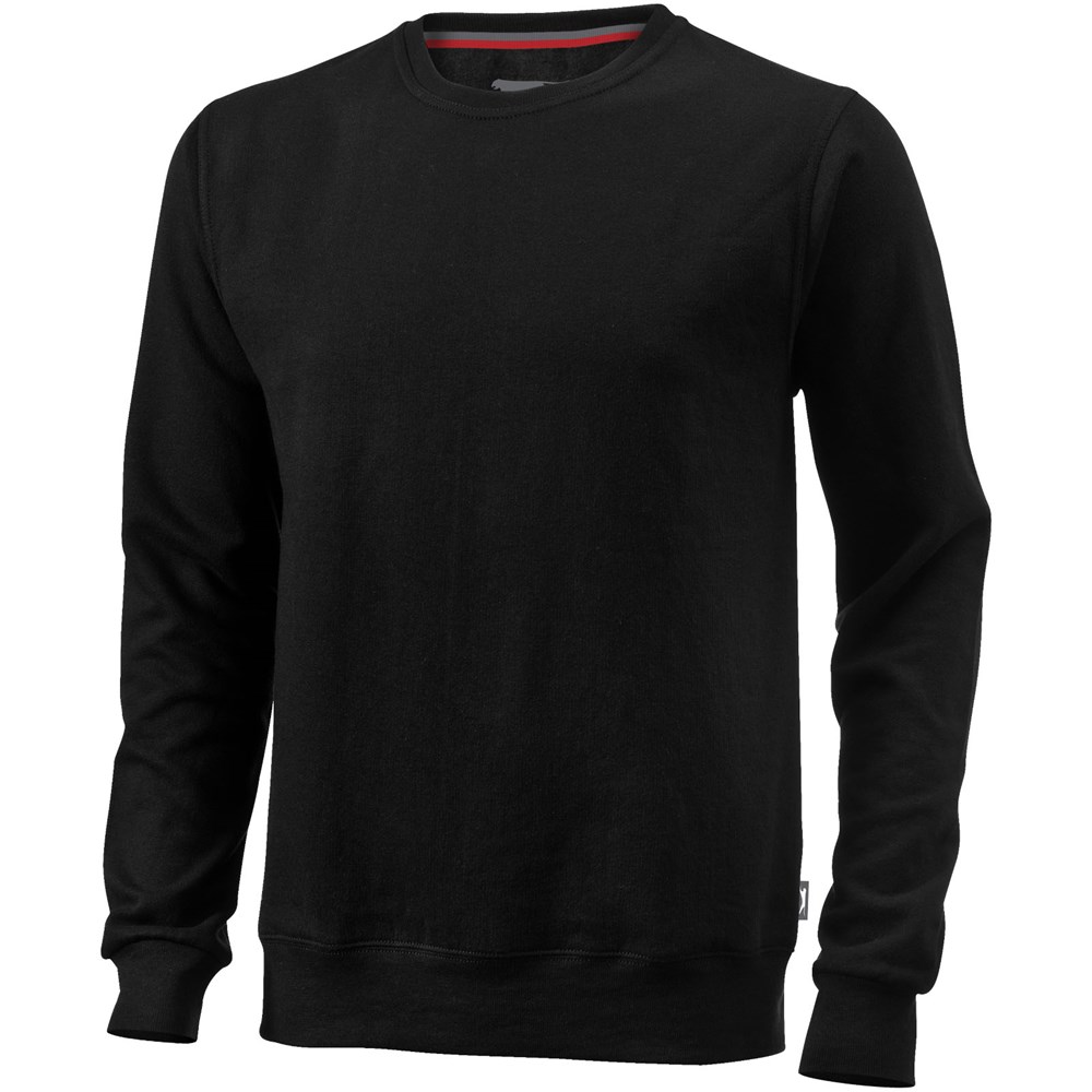 Rundhalsausschnitt. Flachstrickkragen. 1x1 Rippstrickkragen und Bund. Elasischer 2x2 Rippstrickbund. Halbmond. 2-farbiges Nackenband. Label an Seitennaht. Transfer Hauptlabel für den etikettfreien Komfort..