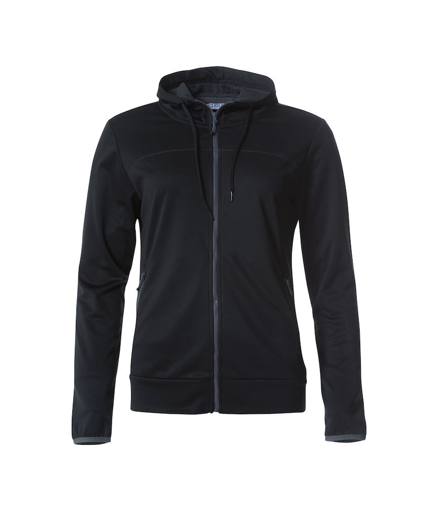 Kapuzenjacke aus weichem, elastischem und komfortablem Polyester. Kapuze mit Mesh und Kordelzug, Vordertaschen mit Reißverschluß und Innentaschen. Kopfhörer geeignet. Waschbar bis 60°C.