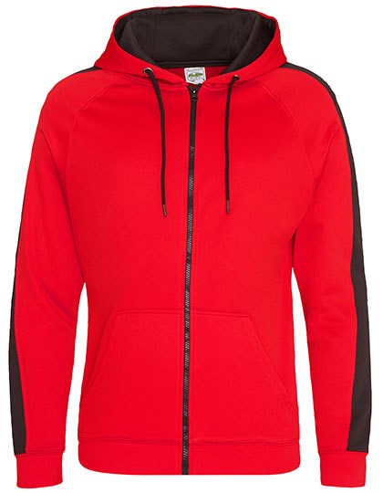 Sportliche Passform | Kapuzen-Sweat-Jacke mit kontrastfarbenem Kunststoff-Reißverschluss | Zwillingsnadelstich-Detail | Raglan-Ärmel mit Kontrast-Streifen | Kontrastkordelzüge | 3-teilige Kapuze mit Kontrast-Innenseite | Gebürstetes Innenvlies | Einfaches Abreißetikett | Geteilte Kängurutasche