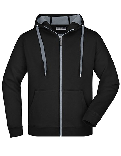 Sportive Bonding-Herrenjacke mit Kapuze | Kapuze mit Kinnschutz | Full-Zip | Kordel und Innenseite in Kontrastfarbe | Kängurutaschen | Flatlocknähte | Elastische Bündchen an Arm- und Bundabschluss | Angesetzte Ärmel