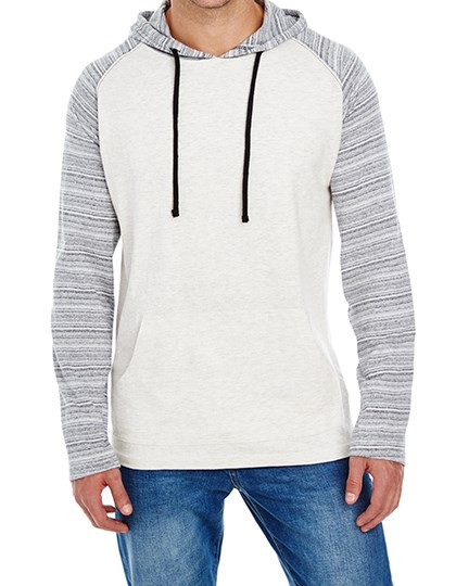 Pullover mit unifarbenem Rumpfteil | Gestreifte Raglan-Ärmel | Kängurutaschen | Einfassung an Ärmelabschlüssen und Saum | Garngefärbte Kapuze und Ärmel