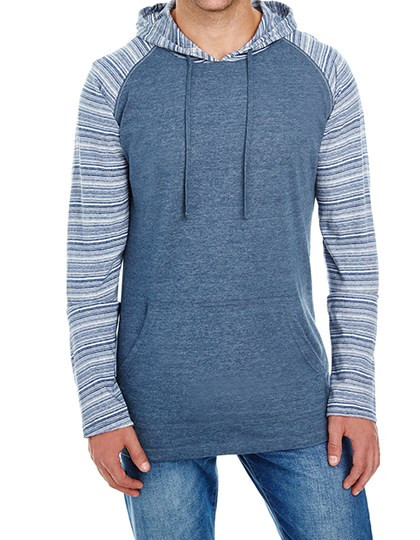 Pullover mit unifarbenem Rumpfteil | Gestreifte Raglan-Ärmel | Kängurutaschen | Einfassung an Ärmelabschlüssen und Saum | Garngefärbte Kapuze und Ärmel