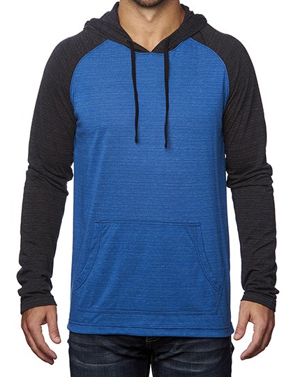 Pullover mit unifarbenem Rumpfteil | Gestreifte Raglan-Ärmel | Kängurutaschen | Einfassung an Ärmelabschlüssen und Saum | Garngefärbte Kapuze und Ärmel
