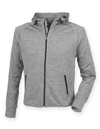 100% Polyester-French Terry | Reflektionsstreifen auf Ärmeln | Schmale Passform, leichtes Material | Raglan-Ärmel | Innenliegende Tasche für MP3-Player | Flatlock-Nähte | Daumenlöcher in den stoffgleichen Bündchen | Trichter-Ausschnitt mit Kapuze, Tunnelzug und Stoppern | Zwei seitliche Eingrifftaschen mit Reißverschluss