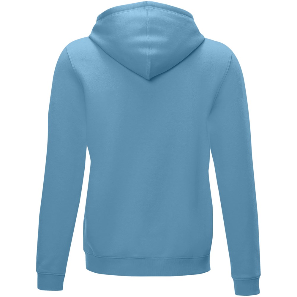 Nachhaltige Promotionbekleidung. GRS zertifizierter Spulenreißverschlussvorne mittig. GOTS zertifizierter Kordelzug in Kapuze. Känguru-Tasche. Innenseite gebürstet. Flachstrickrippenbündchen. Flachstrickrippensaum. Zweifarbiges Marken-Nackenband. Halbmond. Transfer Hauptlabel für den etikettfreien Komfort.