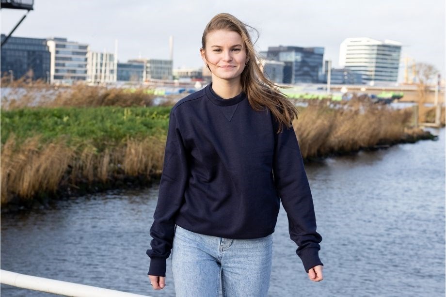 Dieser Pullover besteht aus recyceltem Faden (50% recycelte Baumwolle und 50% recyceltes Polyester). Der Pullover benötigt ungefähr 99% weniger Wasser, erzeugt 40% weniger CO2-Emissionen und verbraucht 40% weniger Energie als ein brandneues Produkt.