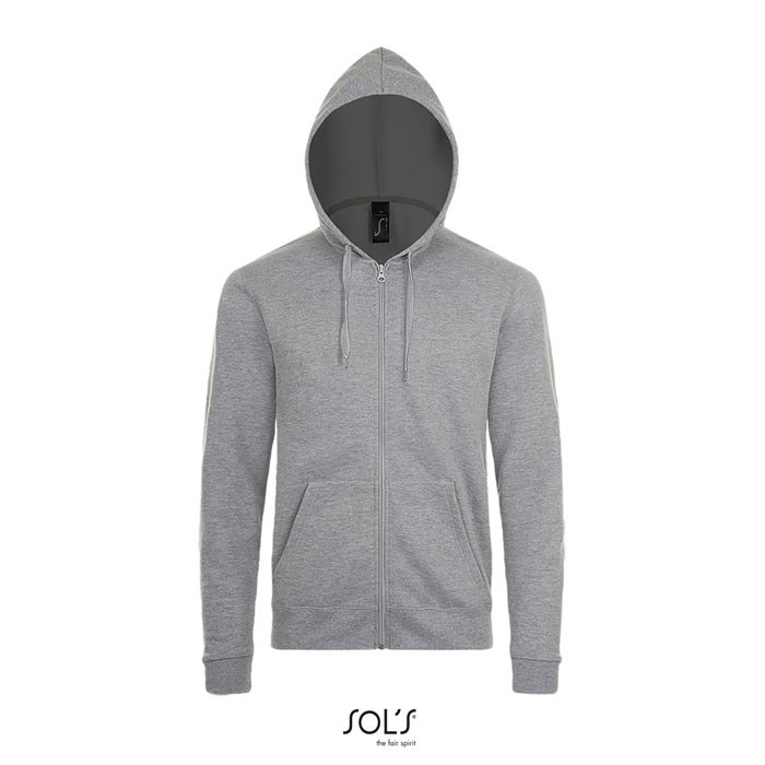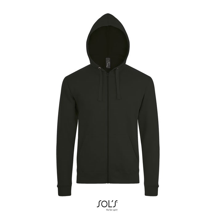SOL'S STONE Unisex, Hoodie/Kapuzenjacke mit durchgehendem Reißverschluss und 2 Känguru-Taschen auf der Vorderseite. Kapuze mit Ton-in-Ton-Kordelzug, Rippenbündchen am Saum und an den Ärmeln. Seitennähte. No Label. Material: 260g/m², angerautes Material aus 50 % Baumwolle - 50 % Polyester.