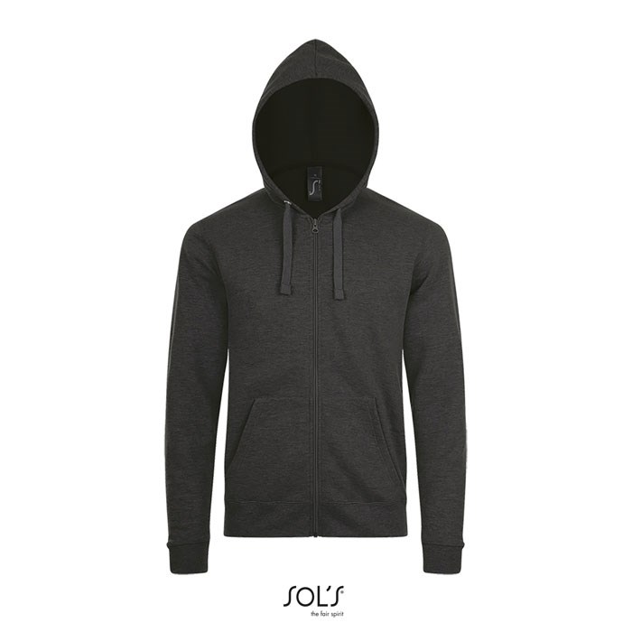 SOL'S STONE Unisex, Hoodie/Kapuzenjacke mit durchgehendem Reißverschluss und 2 Känguru-Taschen auf der Vorderseite. Kapuze mit Ton-in-Ton-Kordelzug, Rippenbündchen am Saum und an den Ärmeln. Seitennähte. No Label. Material: 260g/m², angerautes Material aus 50 % Baumwolle - 50 % Polyester.